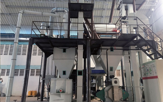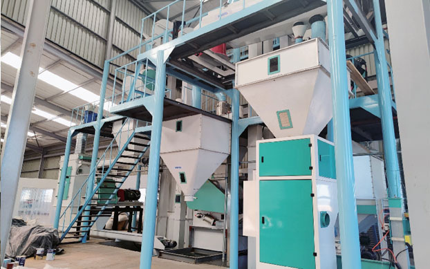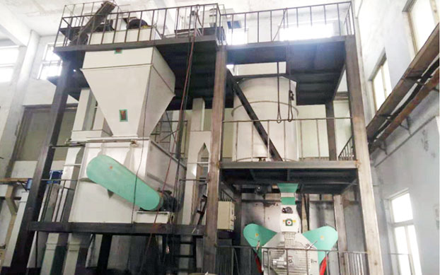 一條完(wán)整的飼料顆粒生產線,包括原料儲存、清理設備、粉製粒設備、冷卻設備、篩分設備、包裝碎設備、混合設備、係統、提升輸送係統和配料控製係統。(以下生產流程僅(jǐn)供參考)